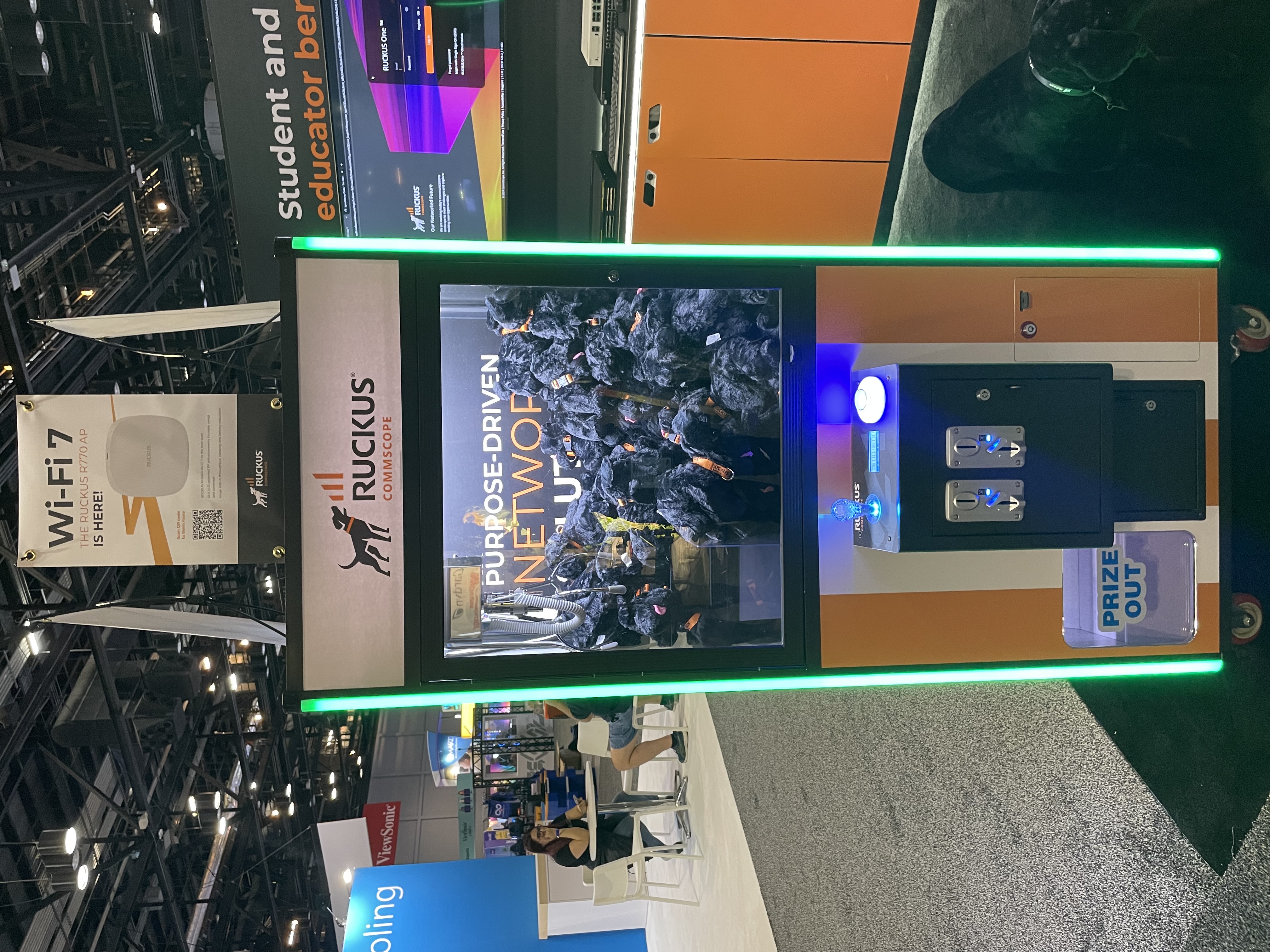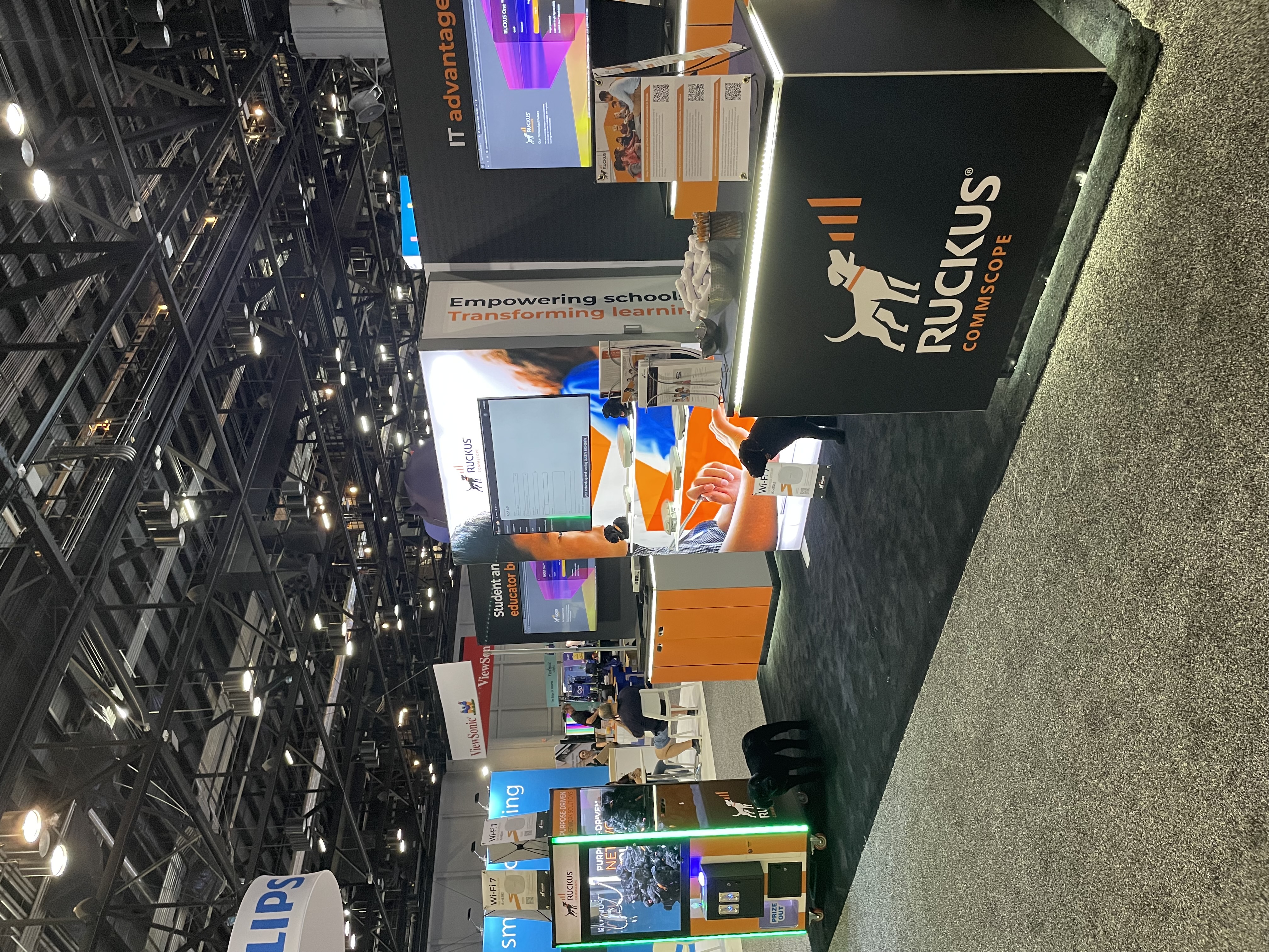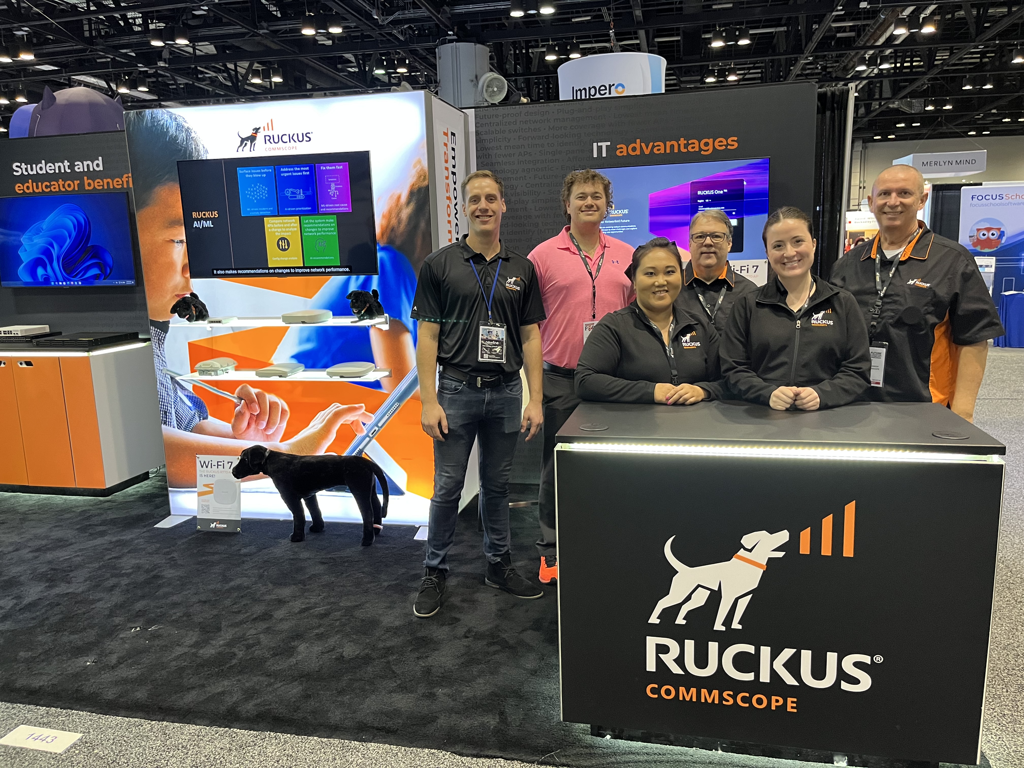 We continued the conversations inside the exhibit hall at our booth. We talked about our primary education solutions with live in-booth demos and gave away RUCKUS puppies to winners of our claw machine. Our puppies stir up such a RUCKUS! In our booth, we highlighted three solutions: Wi-Fi innovation and AI, IT advantages, and student and educator benefits.